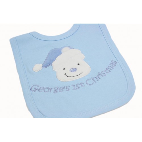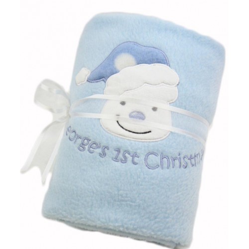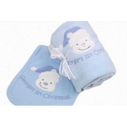 Personalised Baby Boy First 1st Christmas Blanket & Bib Gift Set