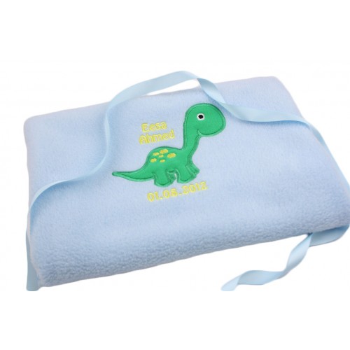 Gorgeous Personalised Soft Touch Baby Embroidered Blanket Gift for a Baby Boy, with cute Dinosaur Applique Design and your choice of wording embroidered, you can add a date of birth as well if you wish. The blanket will be tied with beautiful Organza Ribbon to make your gift extra special.